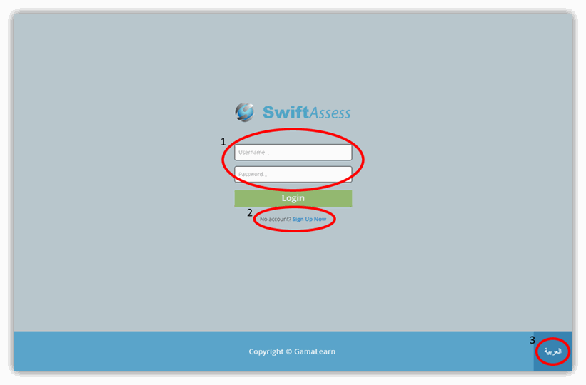 2.If you don't have an account on SwiftAssess, you can sign up for a new account by clicking on "Sign Up Now" button.