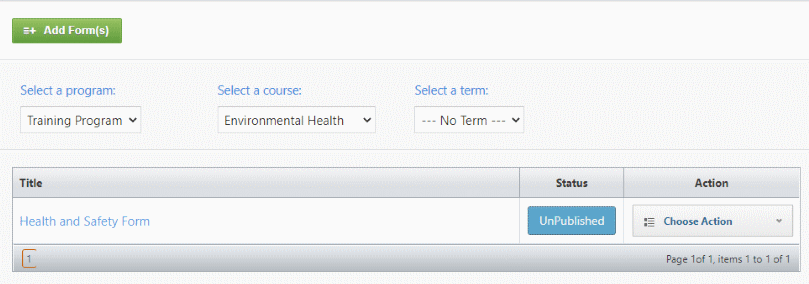4.Select the course that you need to add the form to.